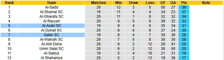 Al-Arabi vừa có mạch 10 trận đấu bất bại khi chạm mặt Qatar tại mọi đấu trường. Al-Arabi thắng tới 3/4 trận đấu gần nhất. Qatar không thắng tới 4/6 trận đấu mới đây tại mọi đấu trường.