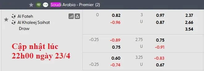 Nhận định soi kèo Al Fateh vs Al-Khaleej, 22h45 ngày 24/4 – Giải VĐQG Saudi Arabia. Phân tích tỷ lệ kèo, dự đoán kết quả Al Fateh đấu vs Al-Khaleej chuẩn xác từ chuyên gia BongdaNET.