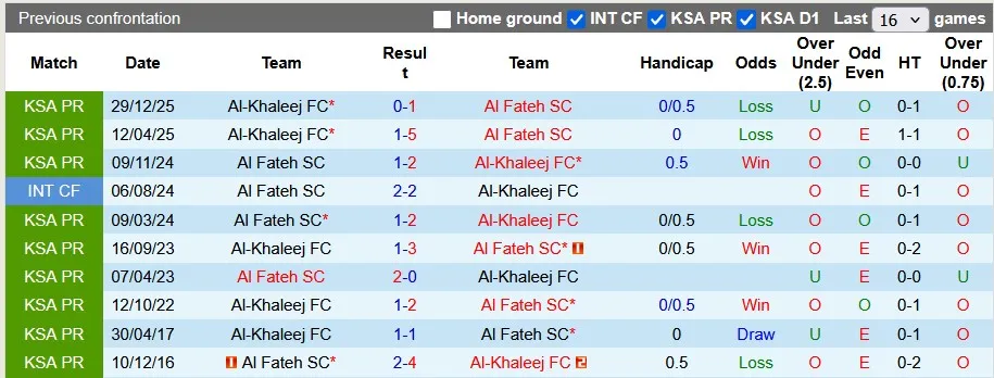 Xét về đối đầu, Al Fateh có nhỉnh hơn một chút trước Al-Khaleej nhưng không đáng kể. Họ thắng một nửa trong số 10 trận đối đầu vừa qua. Trong bối cảnh hiện tại, một kết quả hòa là điều khả dĩ trong cuộc đọ sức hôm nay.