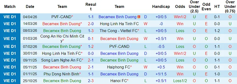 – Phân tích kết quả 10 trận gần nhất của Becamex TPHCM.