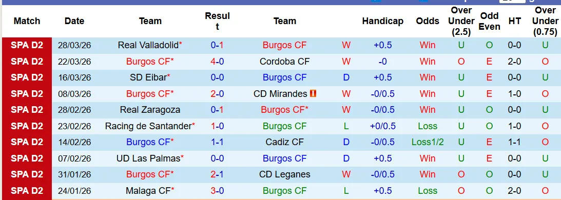 Burgos vừa có mạch 5 trận thắng kèo liên tiếp tại giải hạng 2 Tây Ban Nha. AD Ceuta để thua kèo tới 3/4 trận đấu gần nhất tại giải hạng 2 Tây Ban Nha.