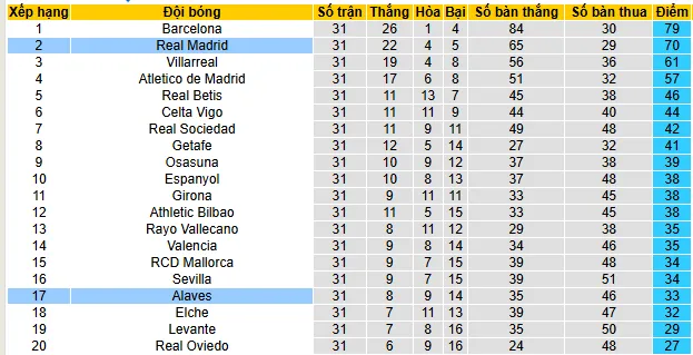 Real Madrid sẽ tiếp đón Alaves trên sân nhà trong khuôn khổ vòng 32 giải La Liga Tây Ban Nha vào lúc 2h30 rạng sáng thứ Tư, ngày 22 tháng 4 theo giờ Việt Nam.