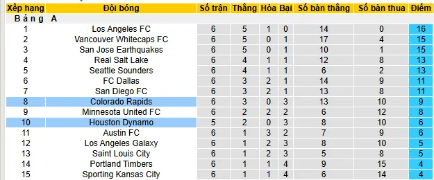 Thống kê phong độ, lịch sử đối đầu của Colorado Rapids vs Houston Dynamo