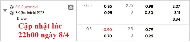 Soi kèo, dự đoán tỷ lệ bóng đá Cukaricki đấu vs Radnicki