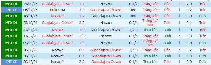 + 8/11 trận gần nhất Necaxa tiếp đón Guadalajara trên sân nhà có ít nhất 3 bàn thắng, trong đó 6 trận có 4 bàn trở lên.