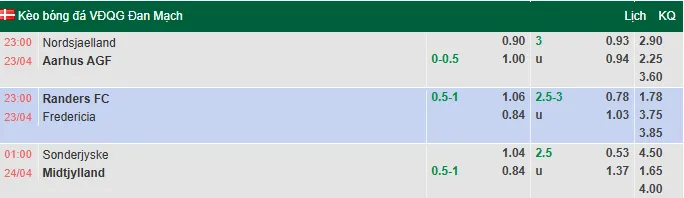 Nhận định bóng đá Randers vs Fredericia, 23h00 ngày 23/4/2026 tại giải VĐQG Đan Mạch. Dự đoán, phân tích tỷ lệ kèo châu Âu, châu Á trận Randers đấu vs Fredericia từ các chuyên gia hàng đầu.