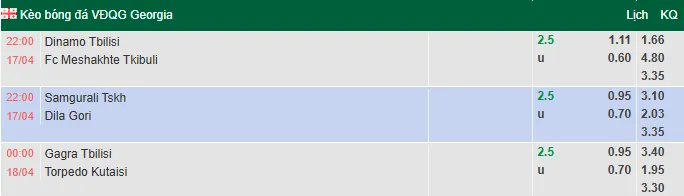 Soi kèo tài xỉu Dinamo Tbilisi vs Meshakhte Tkibuli
