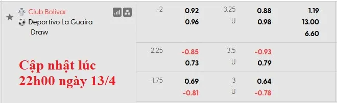 2 trận liên tiếp của Club Bolivar và đến 9/10 của La Guiara đều chỉ có không quá 2 bàn được ghi. Bất chấp việc kèo tài xỉu trận đấu này có lên tới 3 1/4, khả năng nổ tài cũng không hề cao trong lần đầu tiên hai đội gặp nhau.