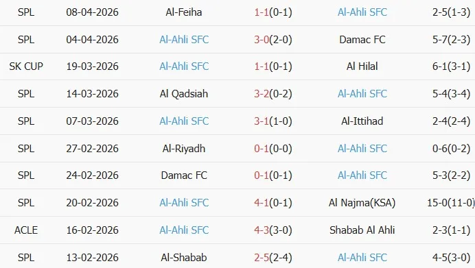 Đối với Al-Ahli, thống kê phong độ 10 trận đấu gần nhất cũng sẽ giúp chúng ta hiểu rõ hơn về phong độ hiện tại của đội bóng này.