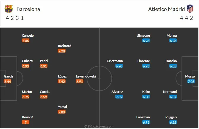 Đội hình dự kiến của Barcelona và Atletico Madrid sẽ giúp chúng ta dự đoán chiến thuật và phong cách chơi của từng đội trong trận đấu này, bạn có thể theo dõi tại dudoanmacao.live.