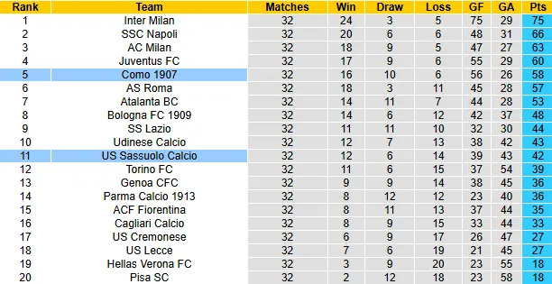 Mùa giải năm nay Sassuolo và Como đã gặp nhau 2 lần ở Serie A và Cúp Quốc gia Italia. Kết quả cả 2 trận đấu đó Como đều giành chiến thắng và giữ sạch lưới. Kịch bản tương tự được dự đoán sẽ tái hiện trong 90 phút sắp tới.