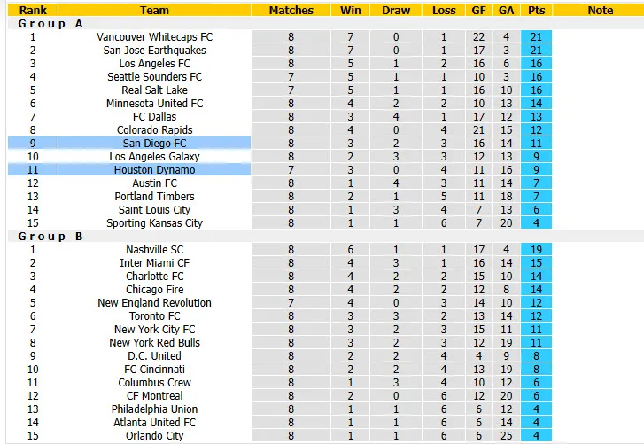 Cụ thể, họ lần lượt để chia điểm ở các lượt trận thứ 4 và 5. Mới đây, San Diego trải qua một mạch 3 trận liên tiếp toàn thua tại giải đấu số 1 xứ cờ hoa. Khách quan, NHM cũng không thể trách San Diego khi liên tiếp các trụ cột gặp chấn thương và không có thể lực tốt nhất khi phải chia sức cho cả cúp C1 khu vực CONCACAF. Sáng mai, San Diego có chuyến hành quân tới sân của Houston Dynamo tại lượt trận thứ 9 của MLS 2026 và với tình hình hiện tại, giới mộ điệu không bất ngờ nếu đội bóng con cưng kéo dài mạch toàn thua. Nhắc lại, đội chủ nhà Houston Dynamo đang có được trạng thái hưng phấn khi toàn thắng 2 lượt trận mới đây tại mọi đấu trường và tự tin đánh bại San Diego.