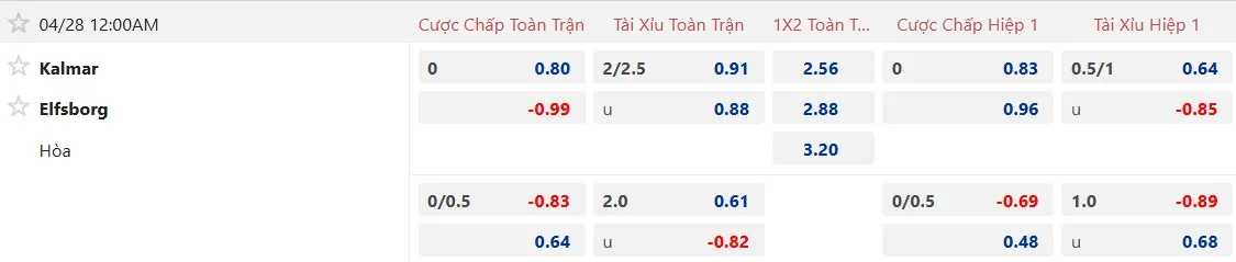 Nhận định soi kèo Kalmar vs Elfsborg, 00h00 ngày 28/4 tại giải VĐQG Thụy Điển. Phân tích tỷ lệ kèo, dự đoán kết quả Kalmar vs Elfsborg từ tỷ lệ châu Âu, châu Á qua các chuyên gia hàng đầu.