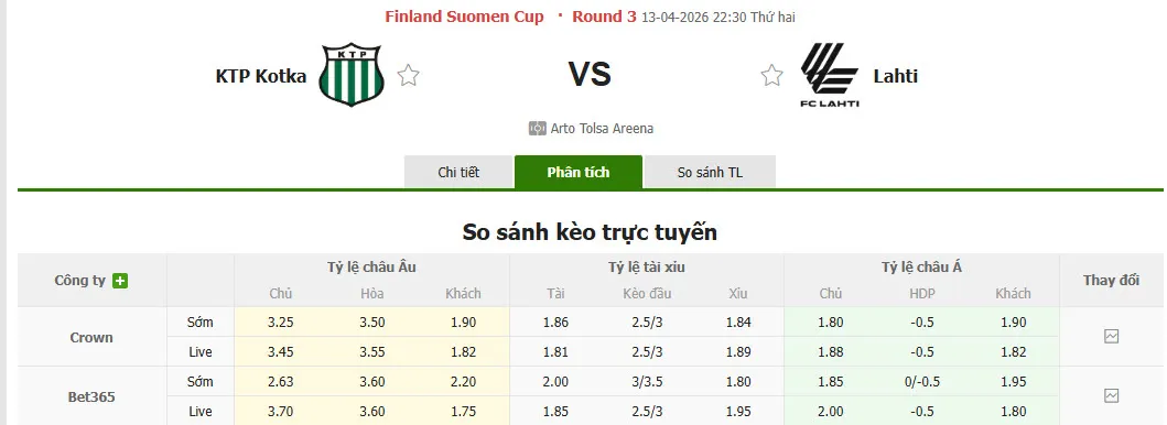 Nhận định soi kèo KTP vs Lahti, 22h30 ngày 13/4 tại cúp QG Phần Lan. Phân tích tỷ lệ kèo, dự đoán kết quả KTP đấu với Lahti từ tỷ lệ châu Âu, châu Á qua các chuyên gia hàng đầu.