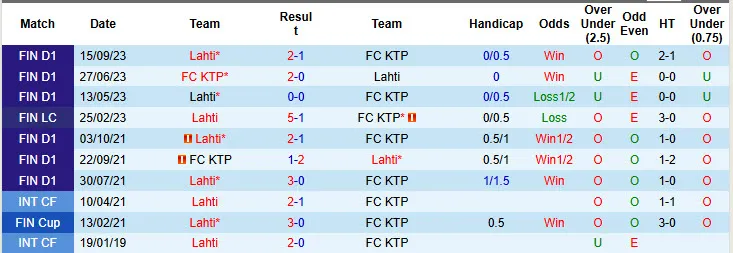 KTP có được 3 điểm trọn vẹn ở trận đấu mới đây chạm mặt Lahti với tâm thế đội chủ nhà. KTP vừa có mạch 3 trận toàn thắng tại các giải đấu chính thức. Lahti để thua tới 3 trong số 4 trận sân khách gần nhất.