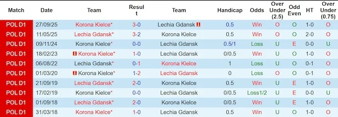 Lịch sử đối đầu Lechia Gdansk vs Korona Kielce