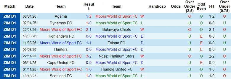 Thống kê phong độ, lịch sử đối đầu của MWOS vs Simba Bhora