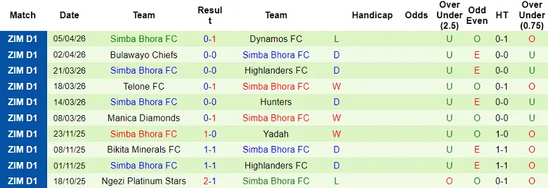 Có tới 9/10 trận sân khách gần đây thuộc khuôn khổ Zimbabwe Premier League của Simba Bhora không xuất hiện nhiều hơn 2 bàn thắng. Kịch bản tương đối quen thuộc ấy hứa hẹn tái diễn khi Simba Bhora thi đấu vòng 6 mùa 2026.