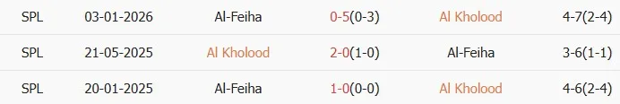 Thống kê phong độ, lịch sử đối đầu của Al-Kholood vs Al-Fayha