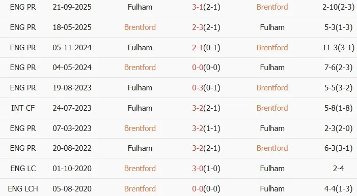 Lịch sử đối đầu giữa Brentford và Fulham cũng là một yếu tố quan trọng cần xem xét.