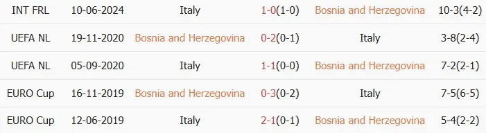Thống kê phong độ, lịch sử đối đầu của Bosnia vs Italia
