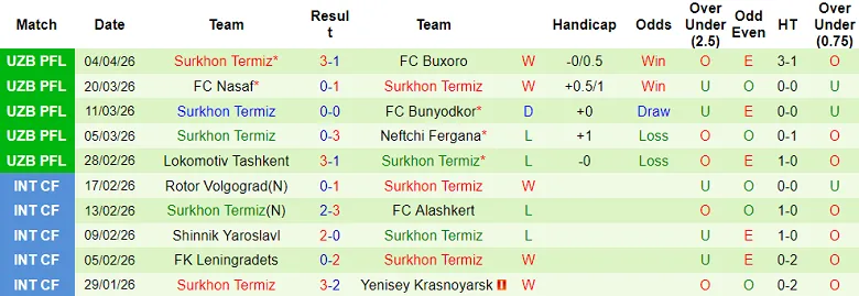 – Thống kê kết quả 10 trận gần nhất của Surkhon