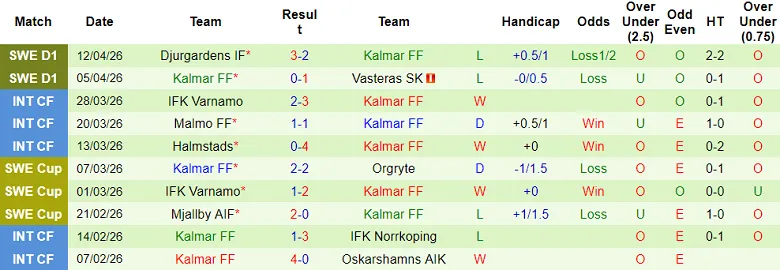 – Thống kê kết quả 10 trận gần nhất của Kalmar