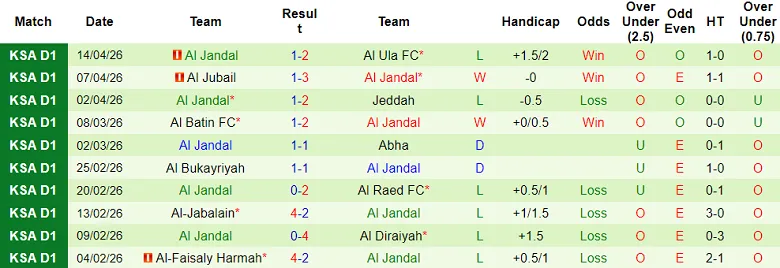 – Thống kê kết quả 10 trận gần nhất của Al Jandal