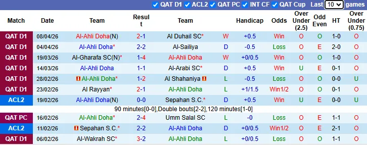 Thống kê phong độ 10 trận gần nhất của Al-Ahli Doha