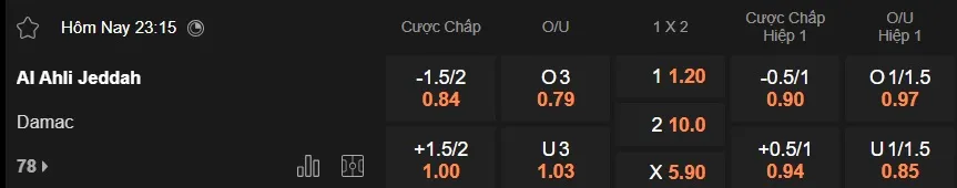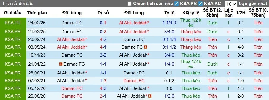 Các cầu thủ Al-Ahli đang không nhận được sự tin tưởng tới từ giới đầu tư châu Á, khi đội bóng này chỉ thắng kèo 1/5 trận đấu gần đây, trong đó có 3 thất bại và 1 trận hòa. Ở chiều ngược lại, Damac đang thi đấu tương đối bùng nổ với 4 trận liên tiếp vượt handicap thành công.