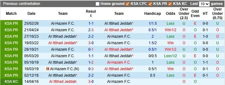 Al Ittihad cũng không phải hoàn toàn áp đảo được Al-Hazem khi họ chỉ thắng 5/10 trận vừa qua (hòa 4 và thua 1). Trong bối cảnh hiện tại, Al-Hazem hoàn toàn có thể tìm kiếm được ít nhất 1 điểm ở trận đấu này.