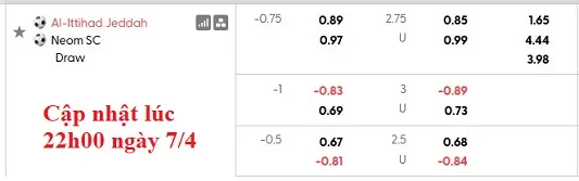 Al Ittihad sở hữu tỷ lệ thắng kèo kém cỏi nhất giải đấu cho đến lúc này với chỉ 6 trận từ đầu mùa. Dù có mức chấp lên đến 3/4 trước Neom, nhưng họ vẫn không đáng tin cậy. Al Ittihad thua kèo 4 trận vừa qua, còn Neom thắng 2/3.