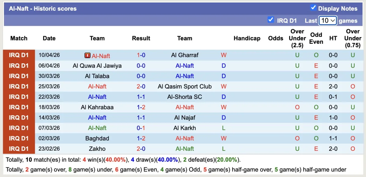 -Thống kê phong độ 10 trận đấu gần nhất của Al-Naft
