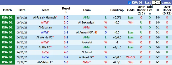 Thống kê phong độ 10 trận gần nhất của Al-Tai