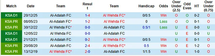 Al Wehda thắng tới 5/7 trận đấu mới đây đụng độ Al-Adalah. Al Wehda thắng 3 trong số 5 trận sân nhà gần nhất. Al-Adalah thua tới 6/8 trận sân khách mới đây tại giải hạng Nhất Saudi Arabia.