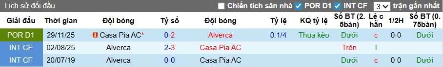 Thống kê phong độ, lịch sử đối đầu của Alverca vs Casa Pia
