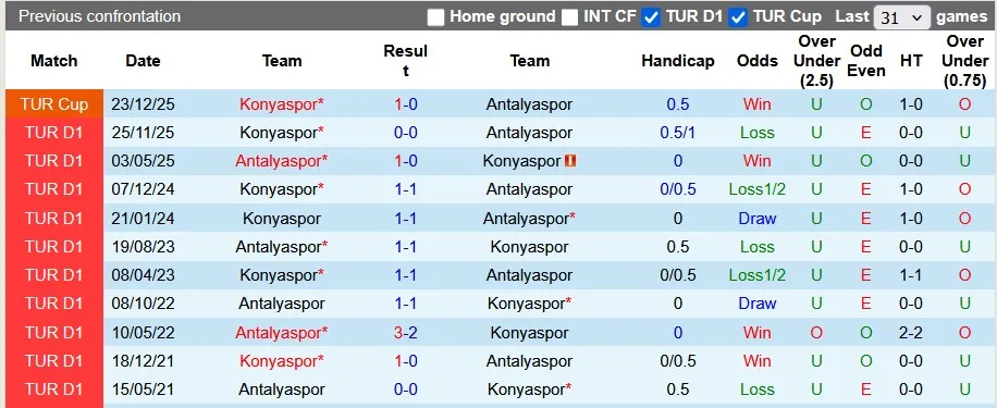 Thống kê phong độ, lịch sử đối đầu của Antalyaspor đấu vs Konyaspor