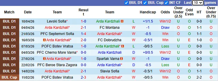 Thống kê phong độ 10 trận gần nhất của Arda Kardzhali