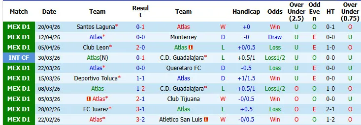 Atlas bất bại kèo tới 4/5 trận đấu mới đây chạm mặt Tigres UANL. Atlas bất bại kèo 2 trận đấu mới đây tại giải VĐQG Mexico. Tigres UANL thua kèo tới 4/5 trận đấu vừa rồi tại giải đấu số 1 Mexico.