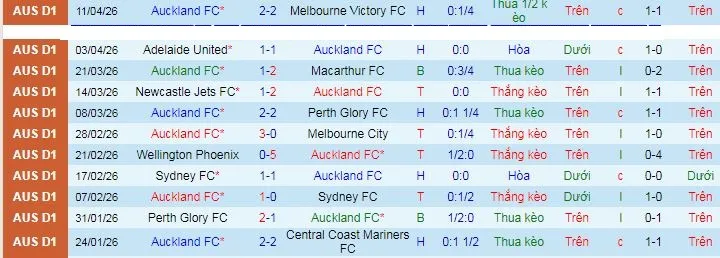 + Auckland thua 3 hòa 1 thắng 1 trong 5 trận gần đây theo kèo châu Á.