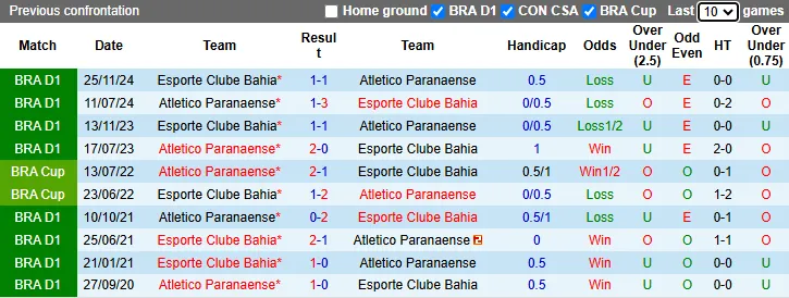 Lịch sử đối đầu Bahia vs Atletico Paranaense