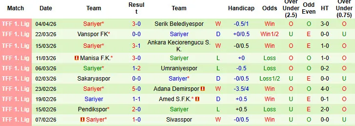 Bandirmaspor vừa có mạch 7 trận đấu bất bại kèo tại giải hạng Nhất Thổ Nhĩ Kỳ. Sariyer để thua kèo tới 4/5 trận sân khách mới đây và khiến NHM dè chừng.