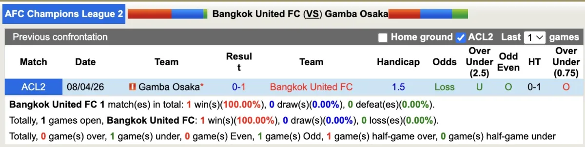 Cũng cần nhấn mạnh rằng 7/10 trận liên tiếp của Gamba Osaka đều thua kèo trong đó có trận lượt đi giữa hai câu lạc bộ diễn ra vào ngày 8 tháng 4 vừa qua. 2/3 trận gần đây Bangkok United đều thắng kèo nên có thể tin tưởng vào đội chủ nhà trận này.