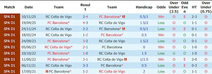 Trong 10 lần gặp nhau gần nhất, Barcelona thắng 6, hòa 2 và thua 2 trước Celta Vigo. Các cuộc đối đầu giữa hai đội thường khá cởi mở với nhiều bàn thắng.Tại Camp Nou, Barcelona thắng 4/5 lần tiếp đón gần đây. Những trận như 4-3 mùa trước hay 3-2 năm 2023 cho thấy Celta Vigo vẫn có khả năng tạo ra thế trận giàu tốc độ, nhưng lợi thế cuối cùng thường nghiêng về phía đội bóng xứ Catalan.