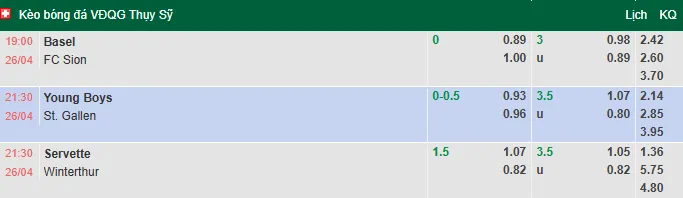 Nhận định bóng đá Basel vs Sion, 19h00 ngày 26/4/2026 tại giải VĐQG Thụy Sĩ. Dự đoán, phân tích tỷ lệ kèo châu Âu, châu Á trận Basel đấu vs Sion từ các chuyên gia hàng đầu.