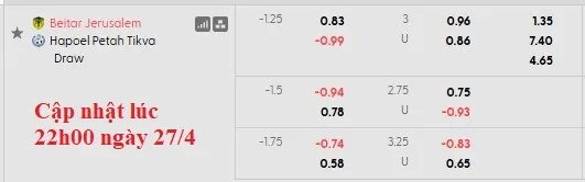 Nhận định soi kèo Beitar Jerusalem vs Hapoel Petah Tikva, 0h00 ngày 29/4 – Giải VĐQG Israel. Phân tích tỷ lệ kèo, dự đoán kết quả Beitar Jerusalem đấu vs Hapoel Petah Tikva chuẩn xác từ chuyên gia BongdaNET.