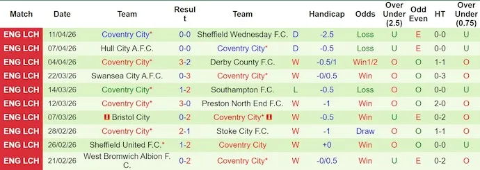 Coventry lại thể hiện bộ mặt hoàn toàn khác. Đội đầu bảng thắng 7, hòa 2 và chỉ thua 1 trong 10 trận gần nhất. Sự ổn định ấy chính là nền tảng đưa họ lên vị trí dẫn đầu Championship. Đặc biệt trên sân khách, Coventry thắng 4 và hòa 1 trong 5 chuyến du đấu gần đây, ghi nhiều bàn thắng quan trọng.