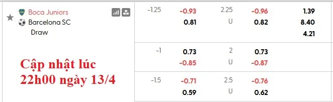Boca Juniors đã có trận thắng kèo ở lượt mở màn, trong khi Barcelona lại là đội thua kèo. Mức chấp dành cho đại diện Argentina ở trận này cũng rất cao, lên tới 1 1/4, cho thấy họ là những người đáng tin cậy hơn.