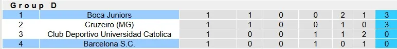 Đó chính là trận mở màn tại bảng D Copa Libertadores, khi Boca Juniors vượt qua CDU. Catolica của Chile với tỷ số 2-1 ngay trên sân đối phương. Ở bảng này, họ cùng với Cruzeiro của Brazil là những đội được đánh giá cao trong việc có vé đi tiếp.