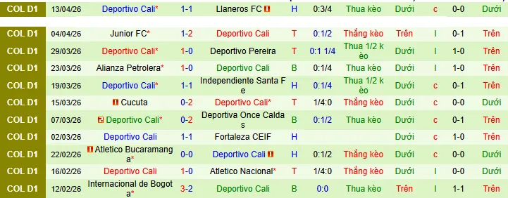 + Deportivo Cali đã không vượt qua được mức chấp -1/4 trong 8/10 trận sân khách gần nhất của họ.
